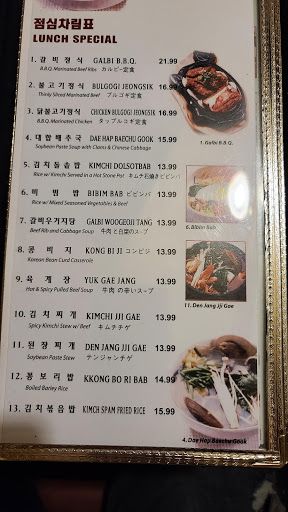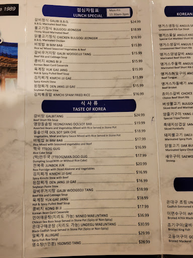 For noodle lovers, the menu presents a variety of options like Mul Naengmyun, a refreshing cold noodle dish perfect for hot days, and Bibim Naengmyun, a spicy and tangy noodle combination that tantalizes your taste buds. Pair these with some Galbi for an unbeatable meal combination, or opt for the unique Chik Naengmyun for a twist on the traditional.